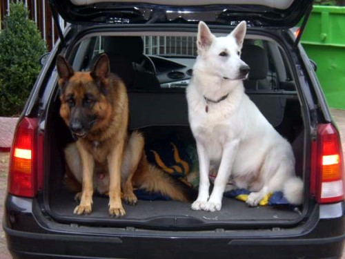 Familie Geschwill mit ihrem brandneuem "Ferrari" Barrichello auf den Weg nach Limburgerhof