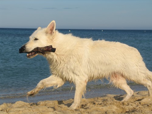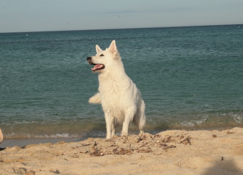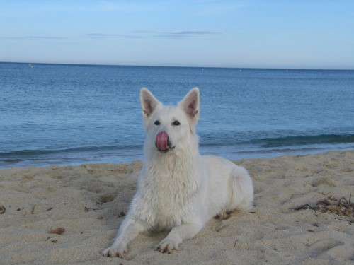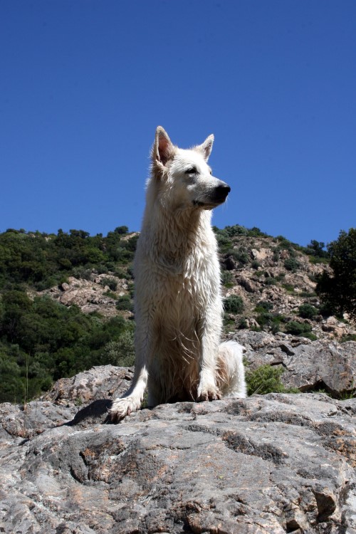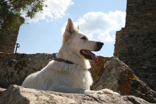 ein spanischer Pyrenäenberghund an der Cote D'Azur