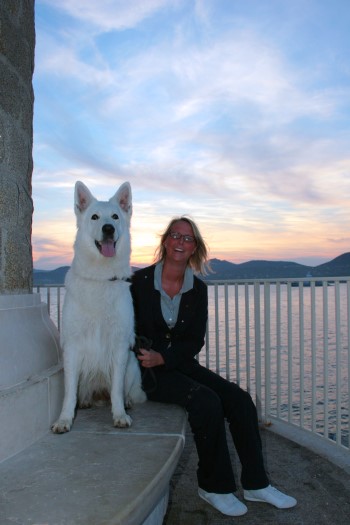 Kaya genießt den Blick aufs Umland von Grimaud
