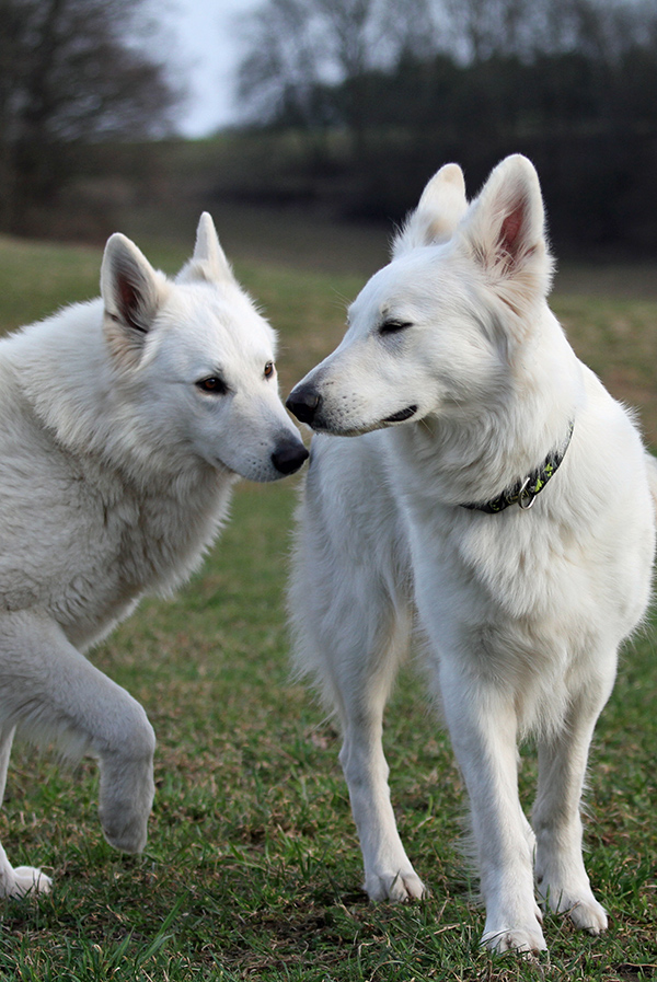 Thüringen Tag 2. da Sabine ja Arbeiten muss, haben wir uns wieder für 17 Uhr verabredet. Papa hat sich Morgens kurzer Hand mein Auto geschnappt und ist nach Gera gefahren zum Shoppen. Wir 4 Weiber sind eine riesen Runde Spazieren gegangen und anschließend die Campingstühle raus geholt und das Kaiserwetter (22Grad und Sonnenschein) genossen. Dann ging es zum 2. Versuch... Phoenix fand Isi schon interessanter, aber so richtig schien sie noch nicht zu riechen, also wieder nur wieder wilde Spielereien zwischen den Youngstern. OK Freitag ist auch noch ein Tag. Tag 3. Termin 17 Uhr... also haben Mama und ich uns das Auto Morgens geschnappt und sind nach Gera zum Shoppen gefahren und Papa hat Hundesitting gemacht. Um 17 Uhr ging's wieder zu Phoenix. Und siehe da, das ganze wurde ernster, bzw. der FSK 18 Teil begann, mit wilden abschlabbern, schmusen, rennen, ect.... aber bis zum Schluß kam es nicht. Na gut Samstag dann halt. Tag 4. wir treffen uns schon Vormittags...Isi und Phoenix freuten sich schon direkt aufeinander, Isi hat im Auto schon vergnügt rumgequitscht... und als die beiden sich trafen ging es auch sofort zur Sache... aber wenn es richtig ernst wurde, war klein Itze doch ein bisl verunsichert, immer kurz bevor es geklappt hat, hat sie nen Rückzieher gemacht...grrrr. OK nicht lange rumfackeln, Pause war angesagt... wir versuchen es Abends noch mal, aber auch dort das gleiche Spiel. Nun kam guter Rat teuer, vielleicht Passen die Beiden ja nicht zusammen, obwohl sie soooo schön miteinander harmonieren... aber was tun??? OK wir versuchen es noch mal Sonntagmorgen... mal als kleine Anmerkung, ich bin extra mit dem PKW gefahren weil ich ja Montag wieder arbeiten muss und es doch unbedingt mitbekommen wollte... Abends haben wir dann bei Sabine die Grillsaison eingeleitet und hatten einen richtig schönen Abend und nach dem Winter hat das Grillfleisch besonders lecker geschmeckt!!!!!!