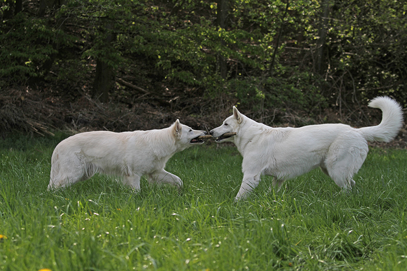 Mama Kaya und Sohn Blaidd kämpfen ums Stöckchen...nebenbei bemerkt, neben