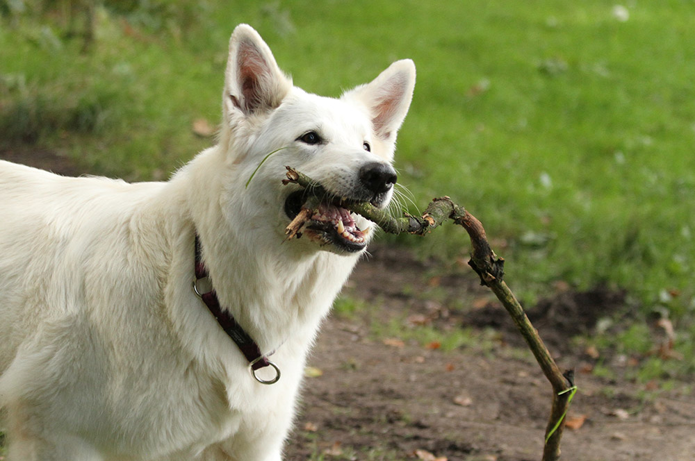 Kaya trägt mal wieder das Kaminholz zusammen