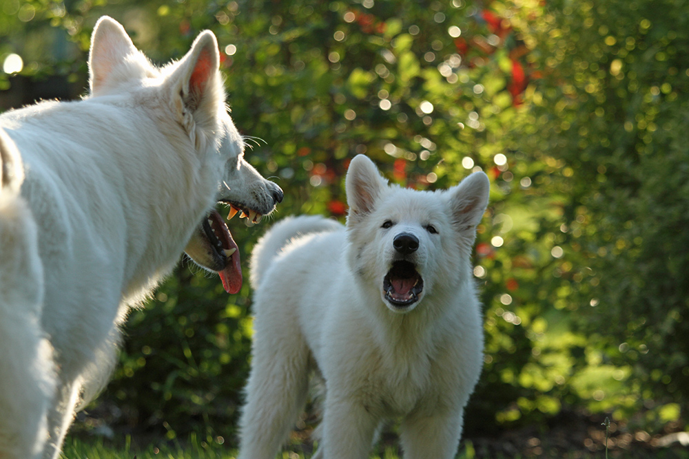 im Garten...Lotti mal wieder dicke Backen und Kaya ist not amused