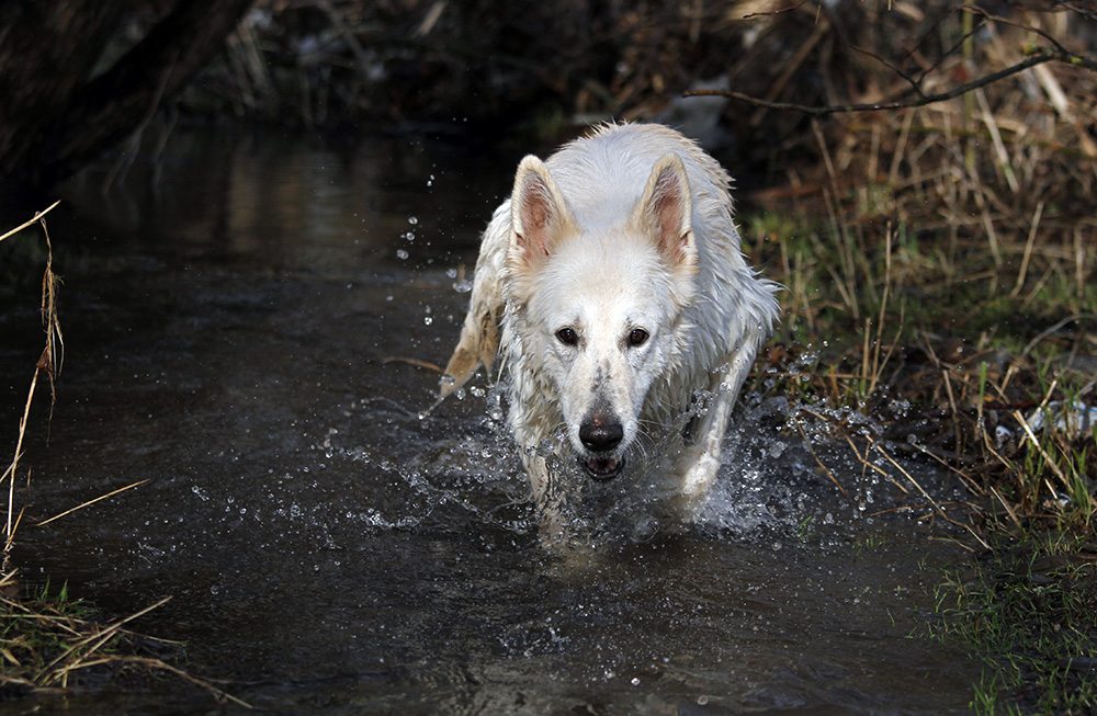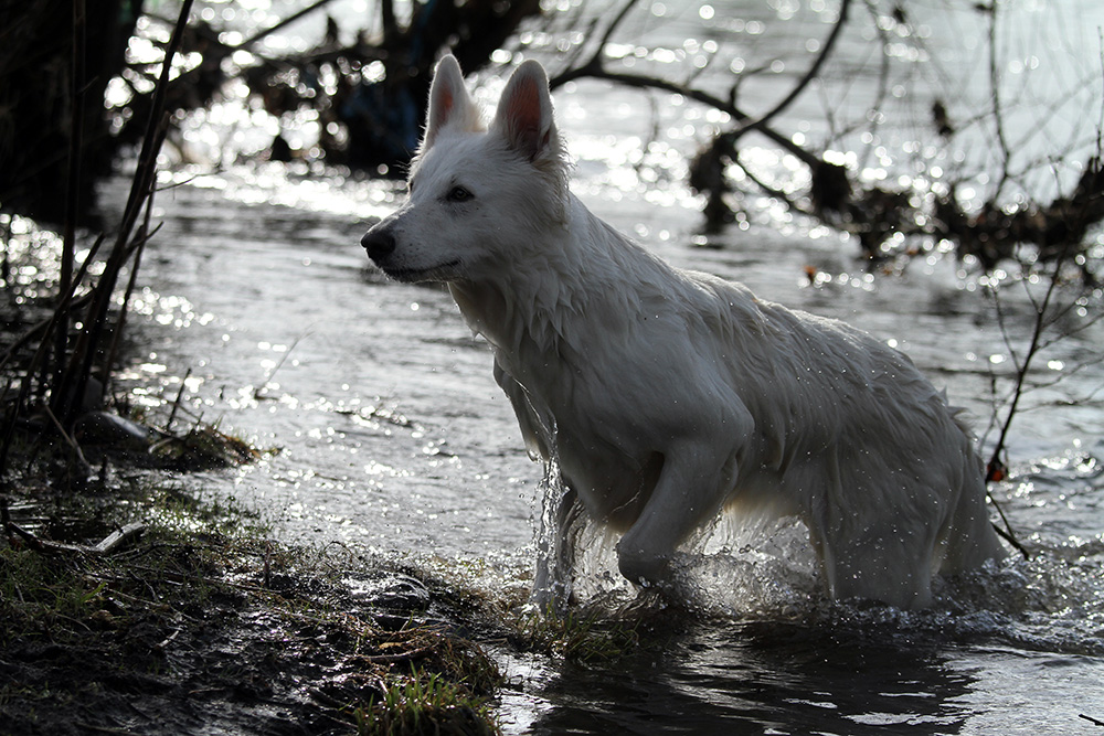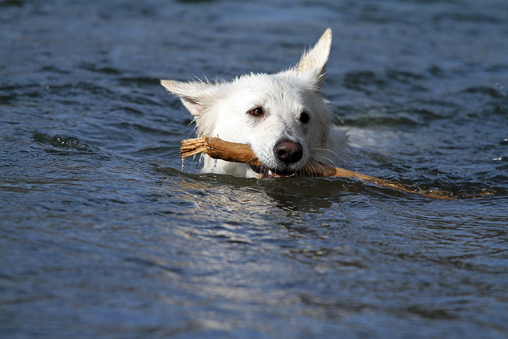 kalten Wasser das Stöckchen zu retten