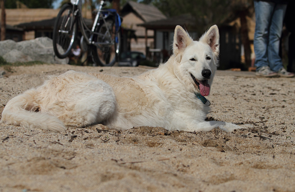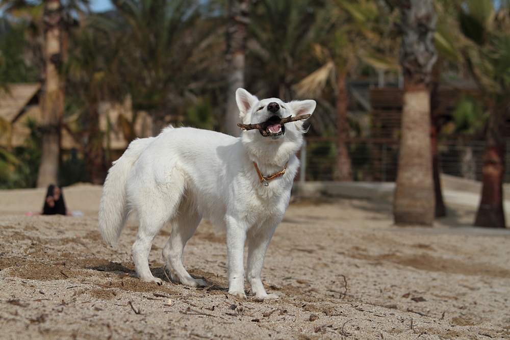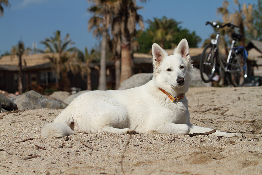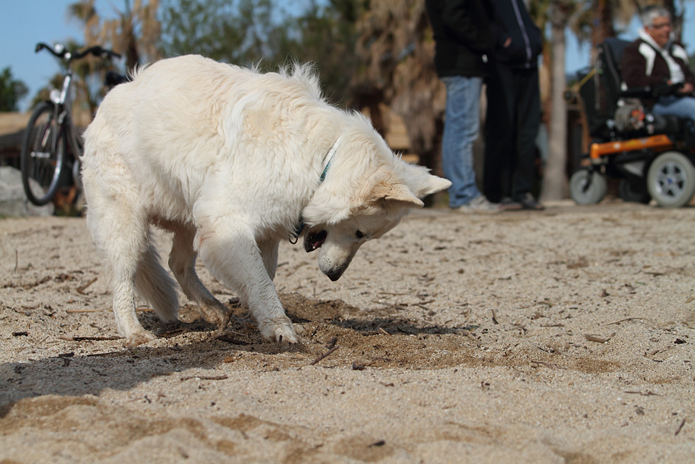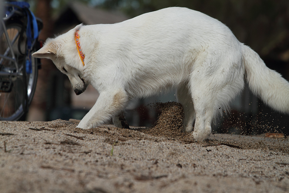 Lotti schaut derweilen nach, ob sich nicht was Fressbares unterm Sand