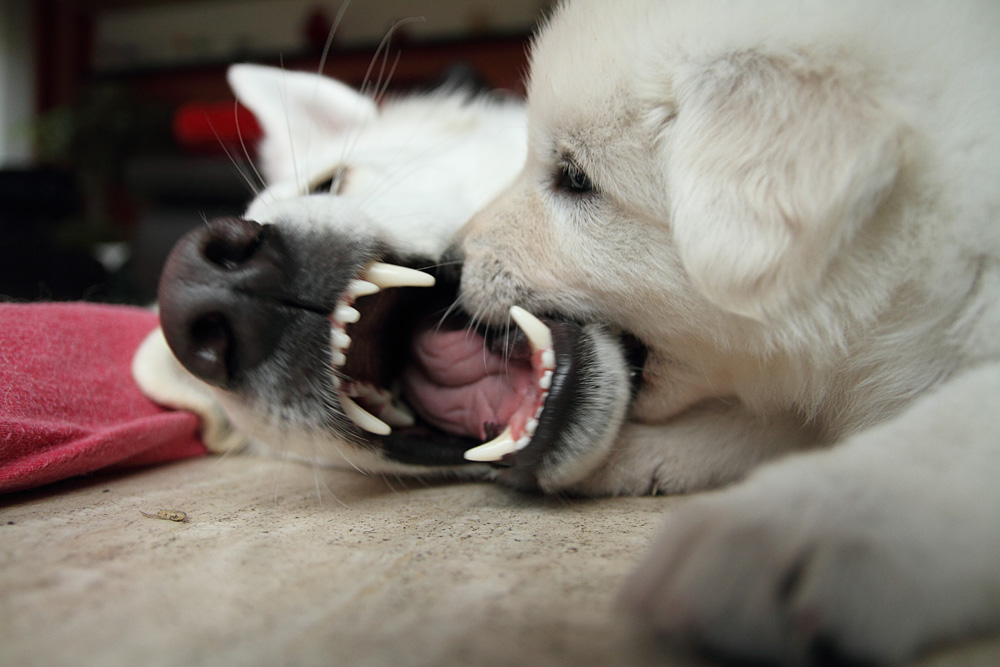 hier wird wieder wild gekaspert, bzw. geprüft wie fest man beissen kann,