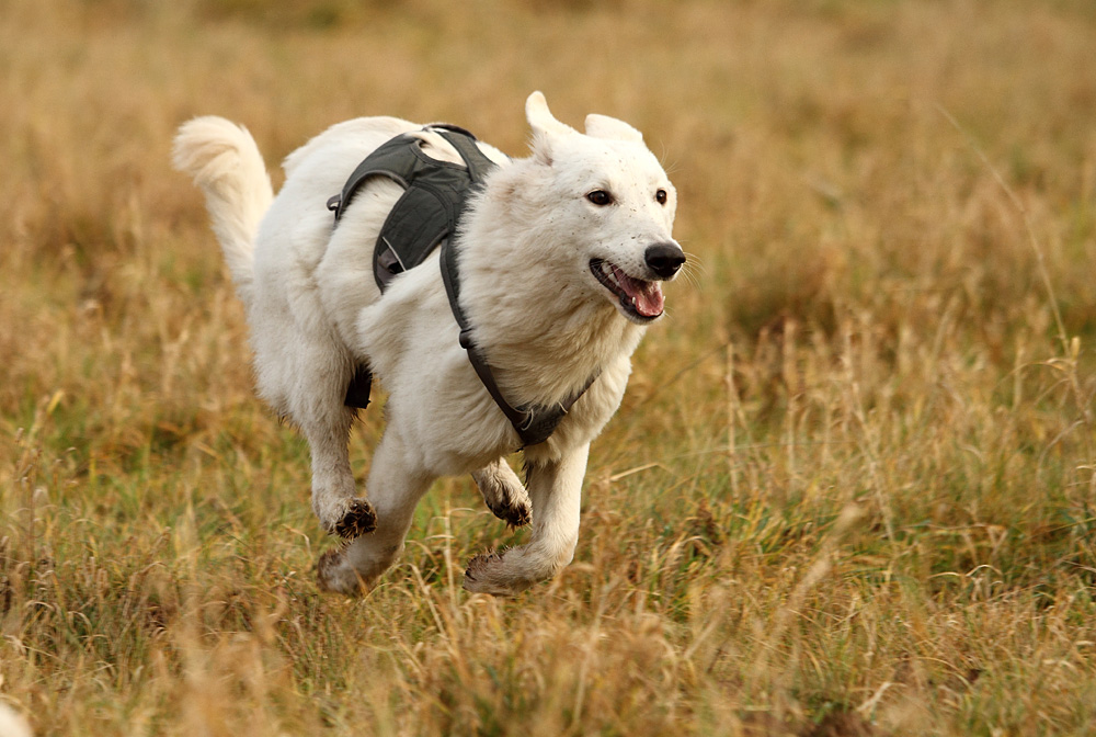 Beagledame Lucy...immer on Tour und will mit der weissen Bande eher wenig zu