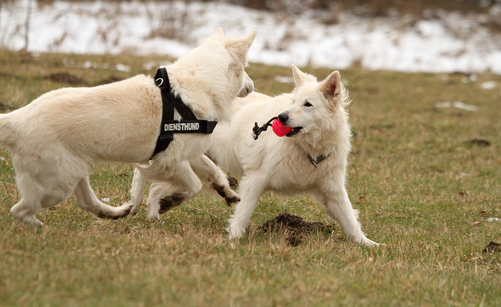 hier will Töchterchen versuchen der Mama den Ball zu klauen...