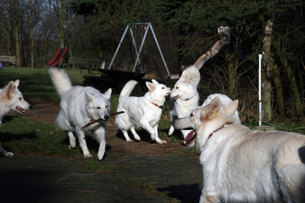 keine Ahnung welcher Hund das Stöckchen trägt (ich glaube Blia?), aber dann
