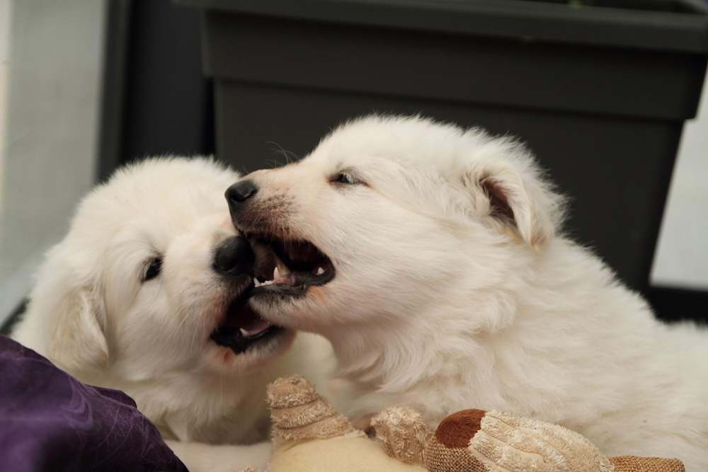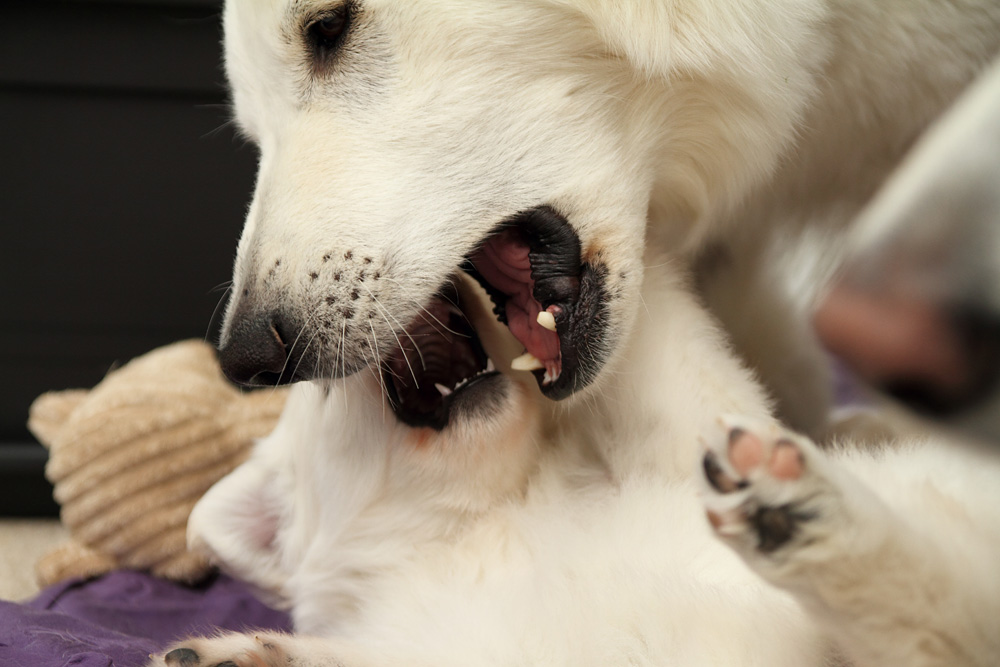 Ebby zeigt ihren Bruder, was sie davon hält, permant in die Rute gebissen