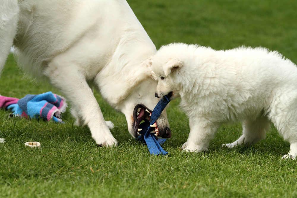 Lotta und Ebby beim Tauziehen