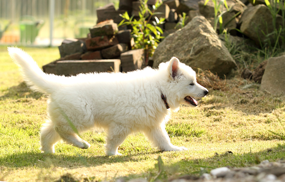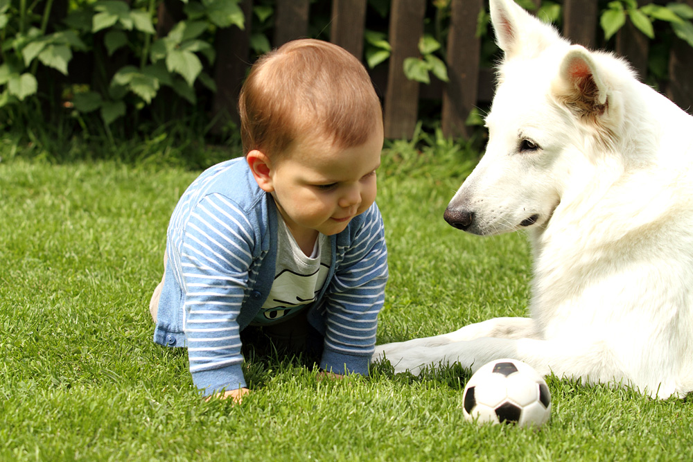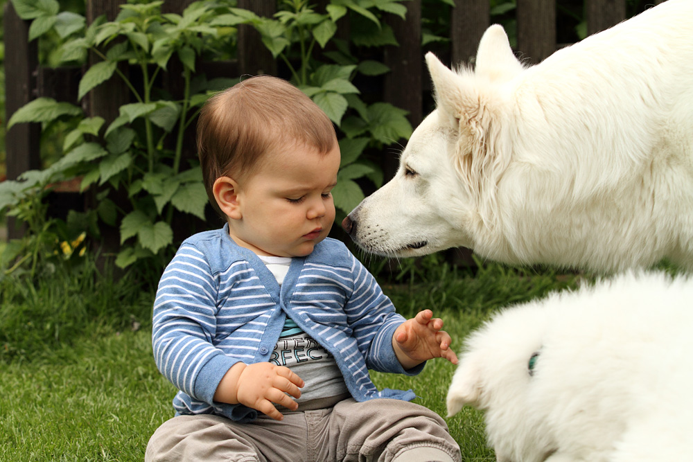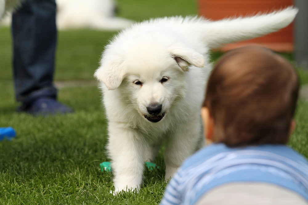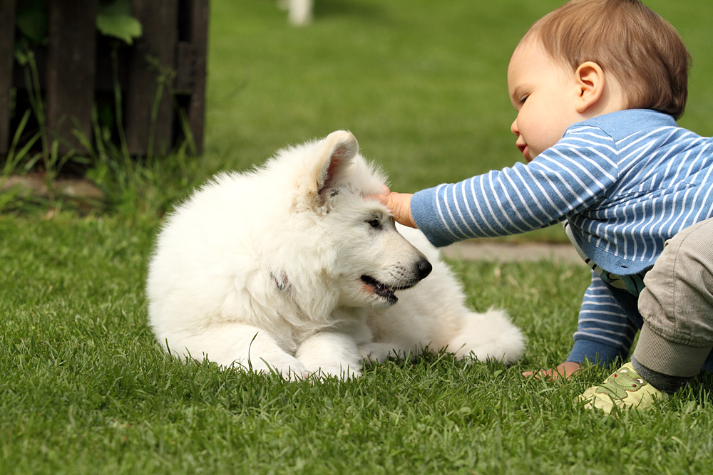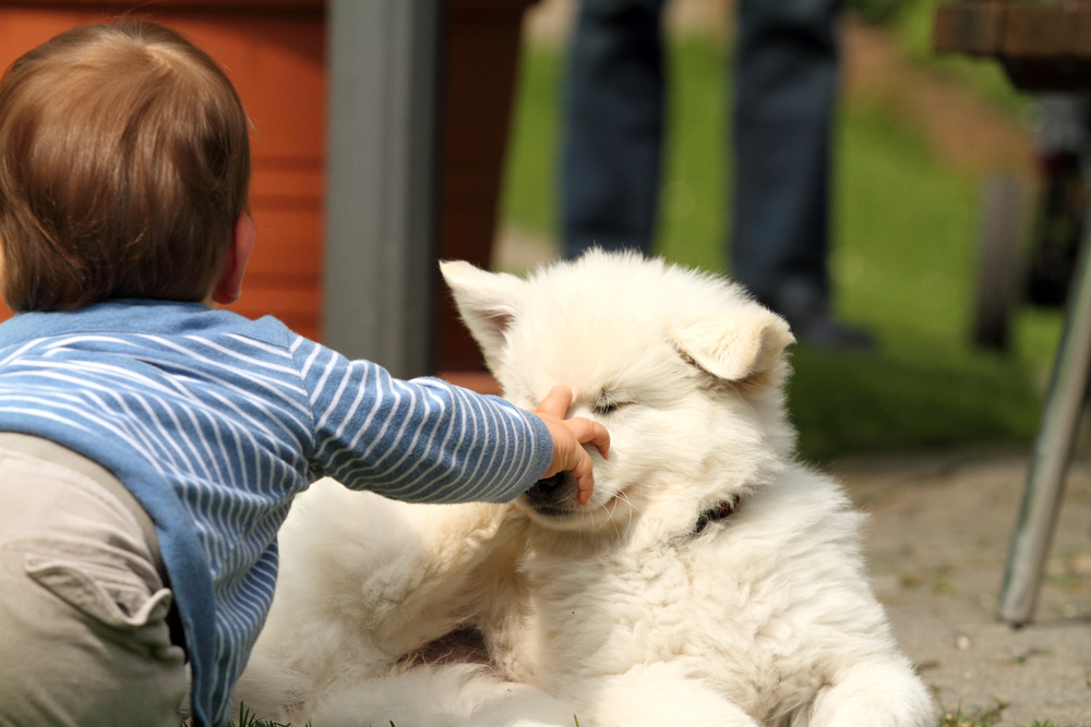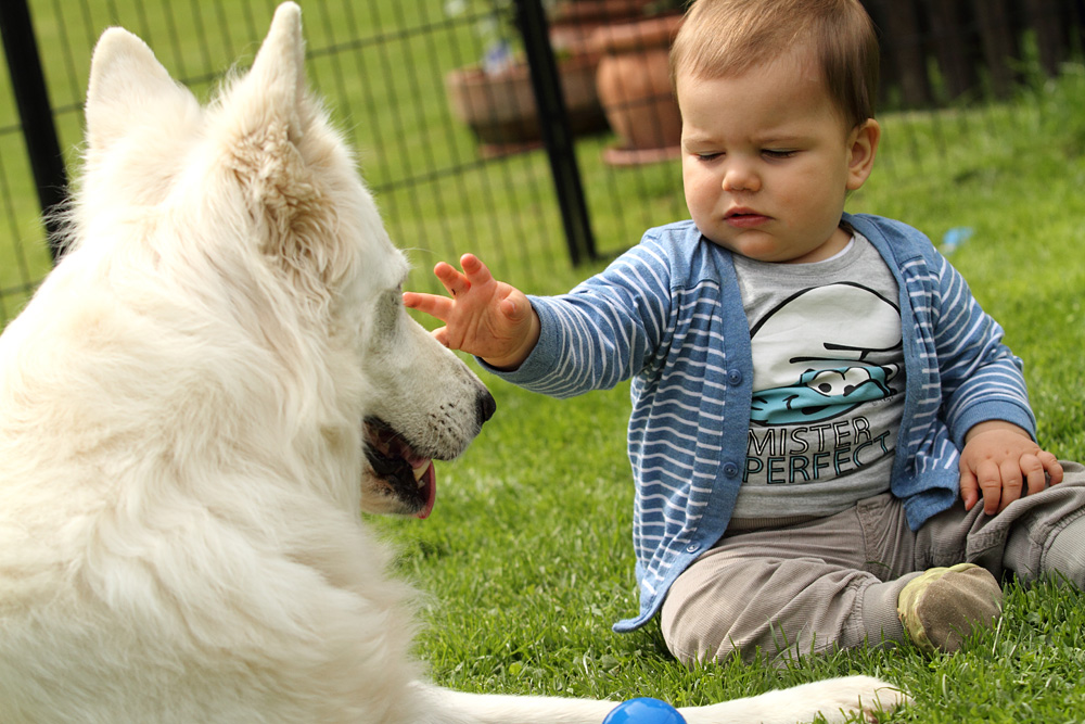 so streichelt Kleinkind einen Welpen...was Ebby wohl denkt :-)
